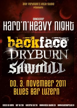 Die Obwaldner HARD'N'HEAVY Night rockte in der inzwischen leider der Abrissbirne zum Opfer gefallenen Blues Bar mächtig. Leider musstenBACKFACE in letzter Minute absagen. DRYBURN und SAWMILLverlängerten spontan ihre Sets und genossen sichtlich die Extra Zeit auf der Bühne!